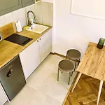 En la propiedad hay una pequeña cocina con horno de microondas, hervidor eléctrico y nevera, además de servicio de tetera/cafetera. El aeropuerto Varsovia-Chopin está a 20 minutos en coche, y la parada de autobús Bellottiego 02, a unos 10 minutos andando del apartamento.